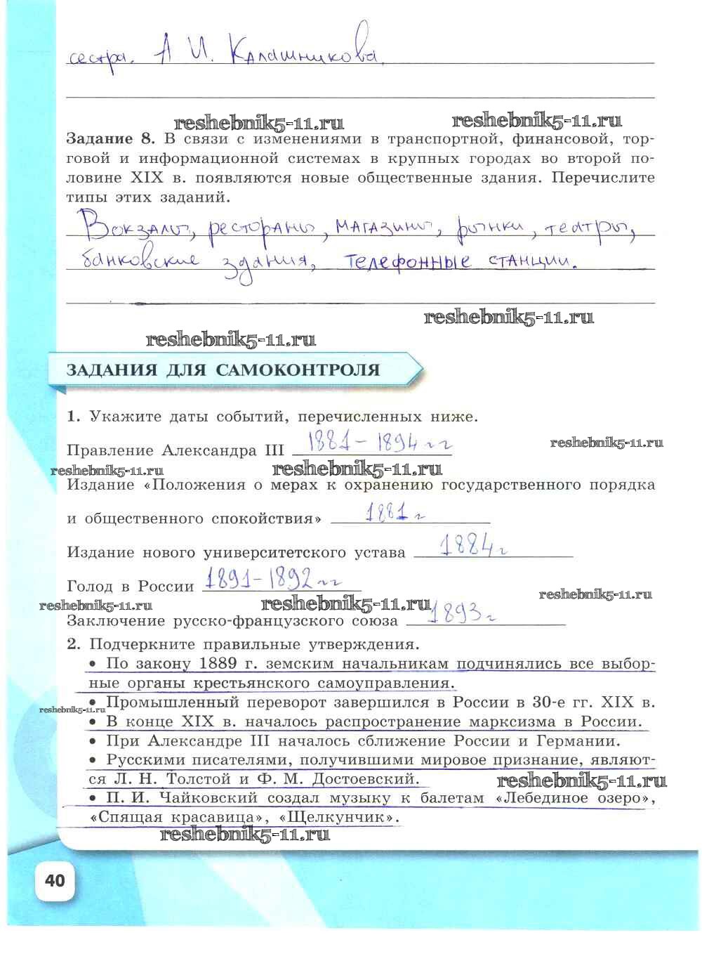Готовая домашняя работа с ответами по Истории за 9 класс Данилов, Косулина, Лукутин, Макарова Рабочая тетрадь УМК Часть 1, 2 Просвещение 2017 ФГОС - Часть 2. Страницы 40