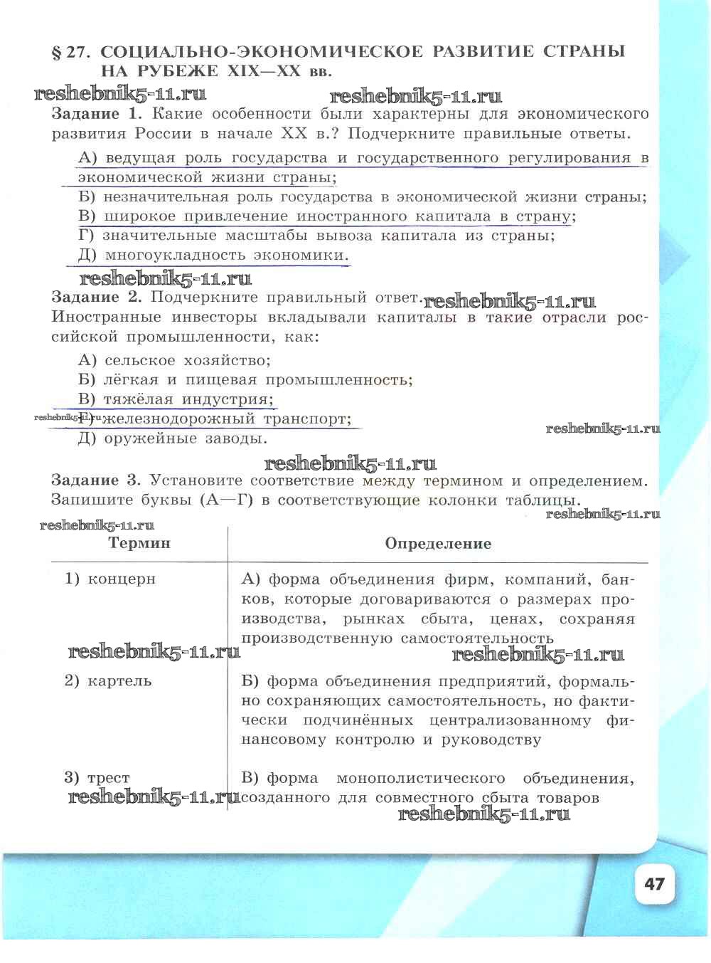 Готовая домашняя работа с ответами по Истории за 9 класс Данилов, Косулина, Лукутин, Макарова Рабочая тетрадь УМК Часть 1, 2 Просвещение 2017 ФГОС - Часть 2. Страницы 47