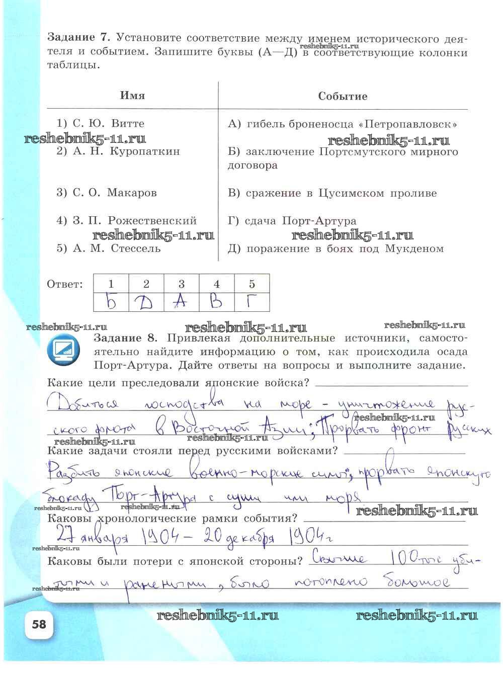 История за 9 класс Данилов Рабочая тетрадь УМК Просвещение часть 2. страница 58