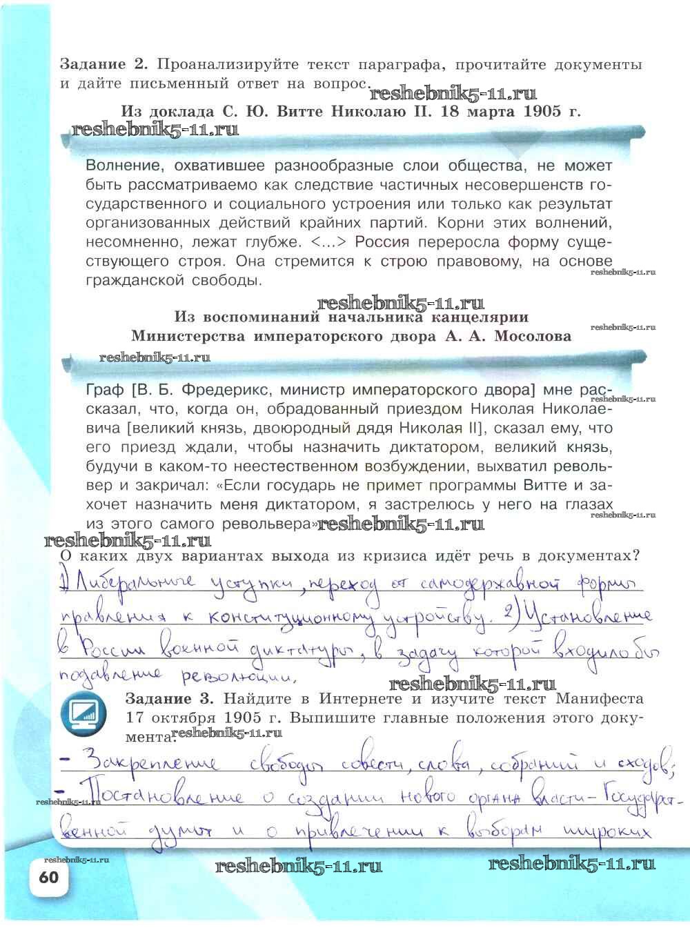 Готовая домашняя работа с ответами по Истории за 9 класс Данилов, Косулина, Лукутин, Макарова Рабочая тетрадь УМК Часть 1, 2 Просвещение 2017 ФГОС - Часть 2. Страницы 60
