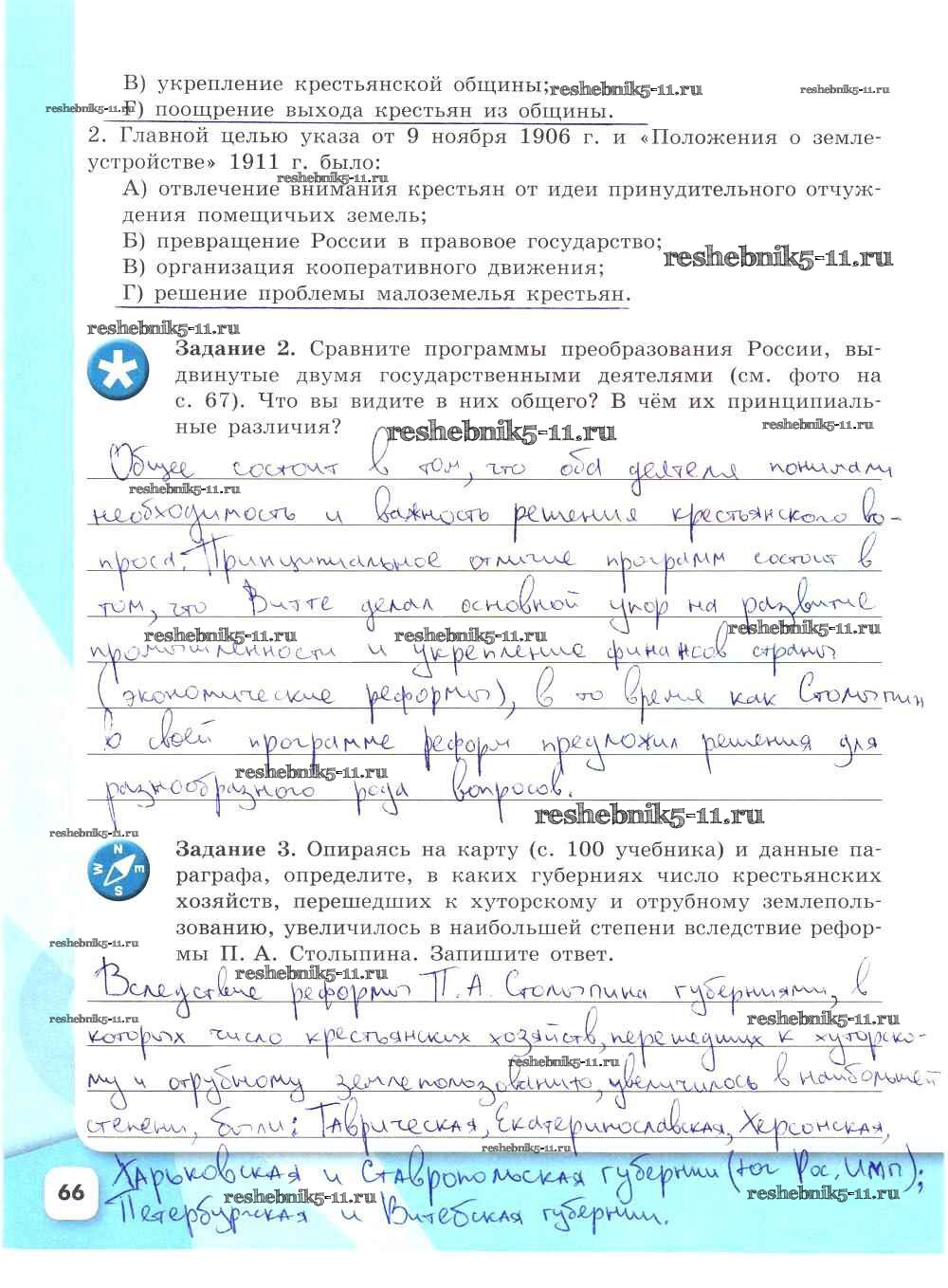 Готовая домашняя работа с ответами по Истории за 9 класс Данилов, Косулина, Лукутин, Макарова Рабочая тетрадь УМК Часть 1, 2 Просвещение 2017 ФГОС - Часть 2. Страницы 66