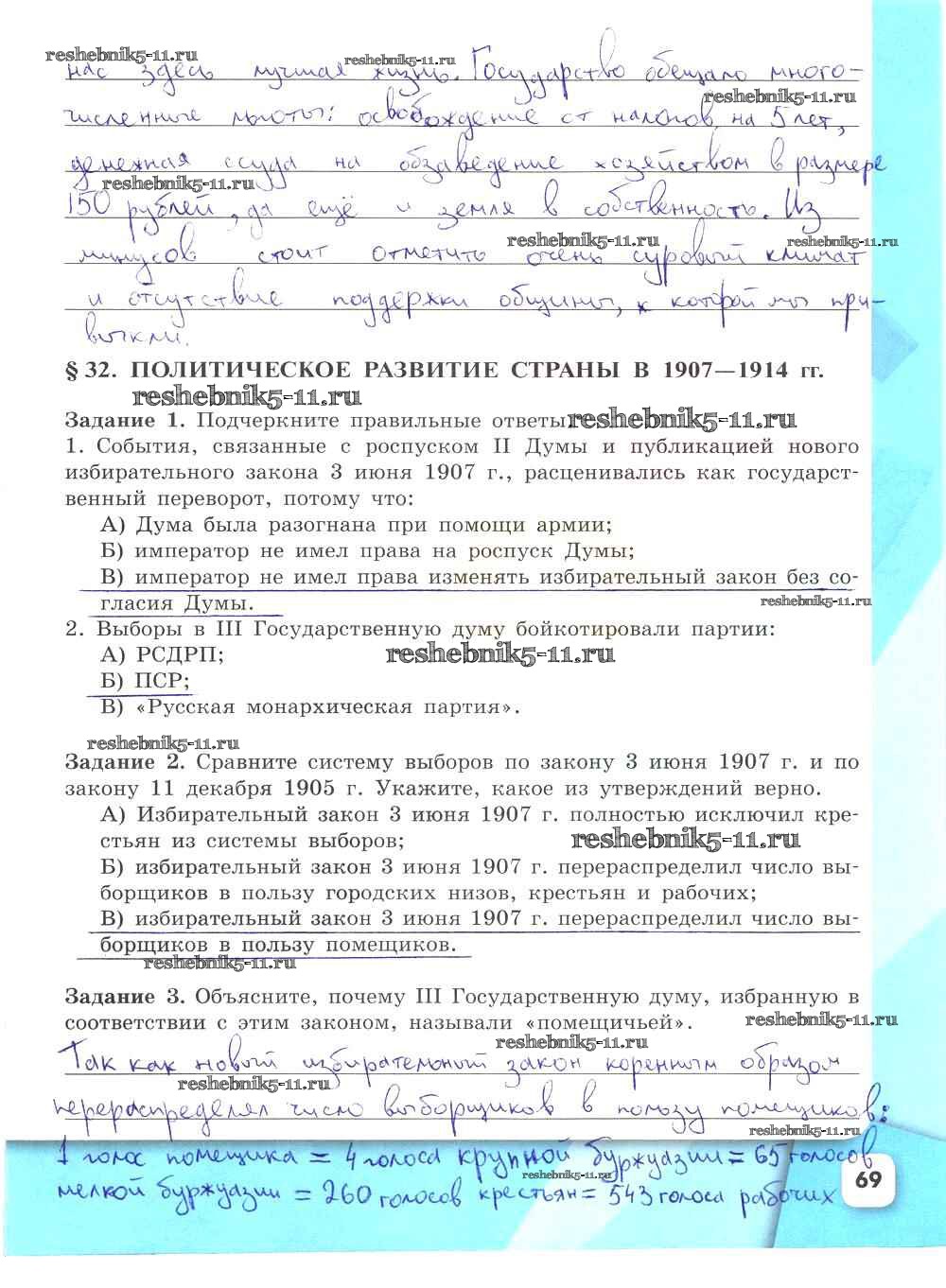 Готовая домашняя работа с ответами по Истории за 9 класс Данилов, Косулина, Лукутин, Макарова Рабочая тетрадь УМК Часть 1, 2 Просвещение 2017 ФГОС - Часть 2. Страницы 69