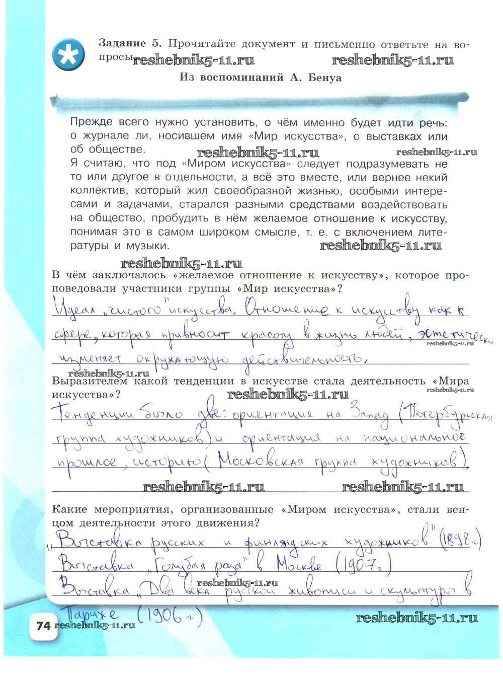 Готовая домашняя работа с ответами по Истории за 9 класс Данилов, Косулина, Лукутин, Макарова Рабочая тетрадь УМК Часть 1, 2 Просвещение 2017 ФГОС - Часть 2. Страницы 74