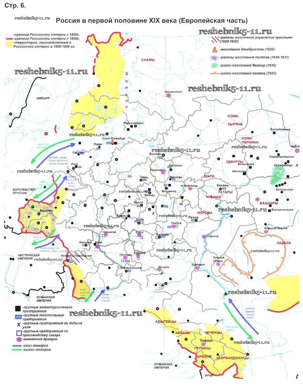 Готовая домашняя работа с ответами по Истории за 9 класс Приваловский, Волкова Контурные карты Дрофа 2016 ФГОС - Страницы 6