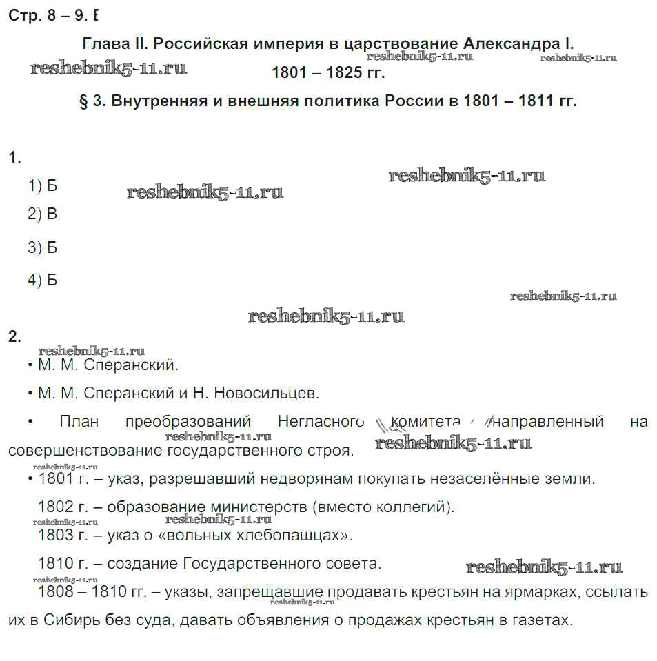 Готовая домашняя работа с ответами по Истории за 9 класс Симонова, Клоков Рабочая тетрадь Вертикаль Дрофа 2017 ФГОС - Страницы 8