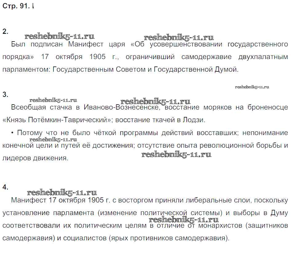 Готовая домашняя работа с ответами по Истории за 9 класс Симонова, Клоков Рабочая тетрадь Вертикаль Дрофа 2017 ФГОС - Страницы 91