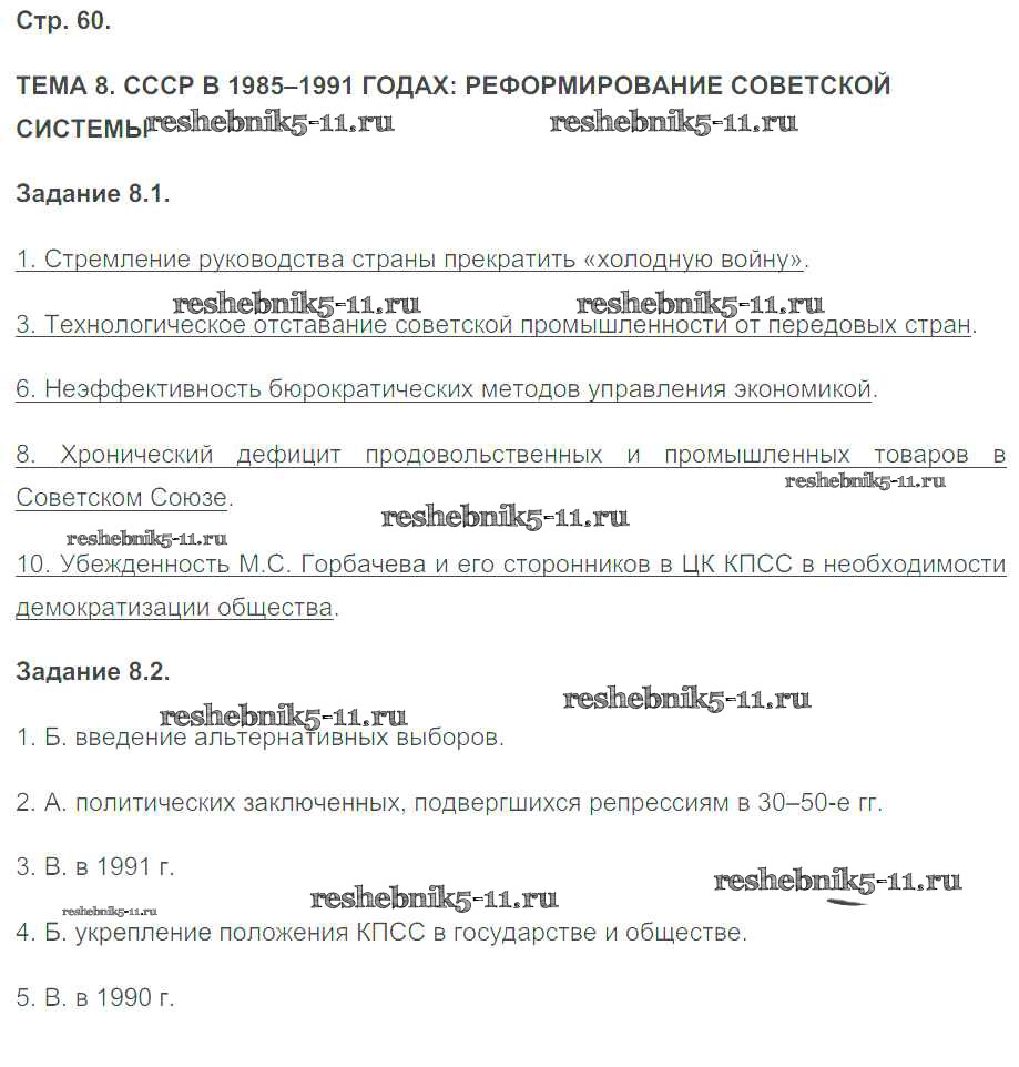 Готовая домашняя работа с ответами по Истории за 9 класс Симонова Рабочая тетрадь с контурными картами УМК Экзамен 2014 ФГОС - Страницы 60