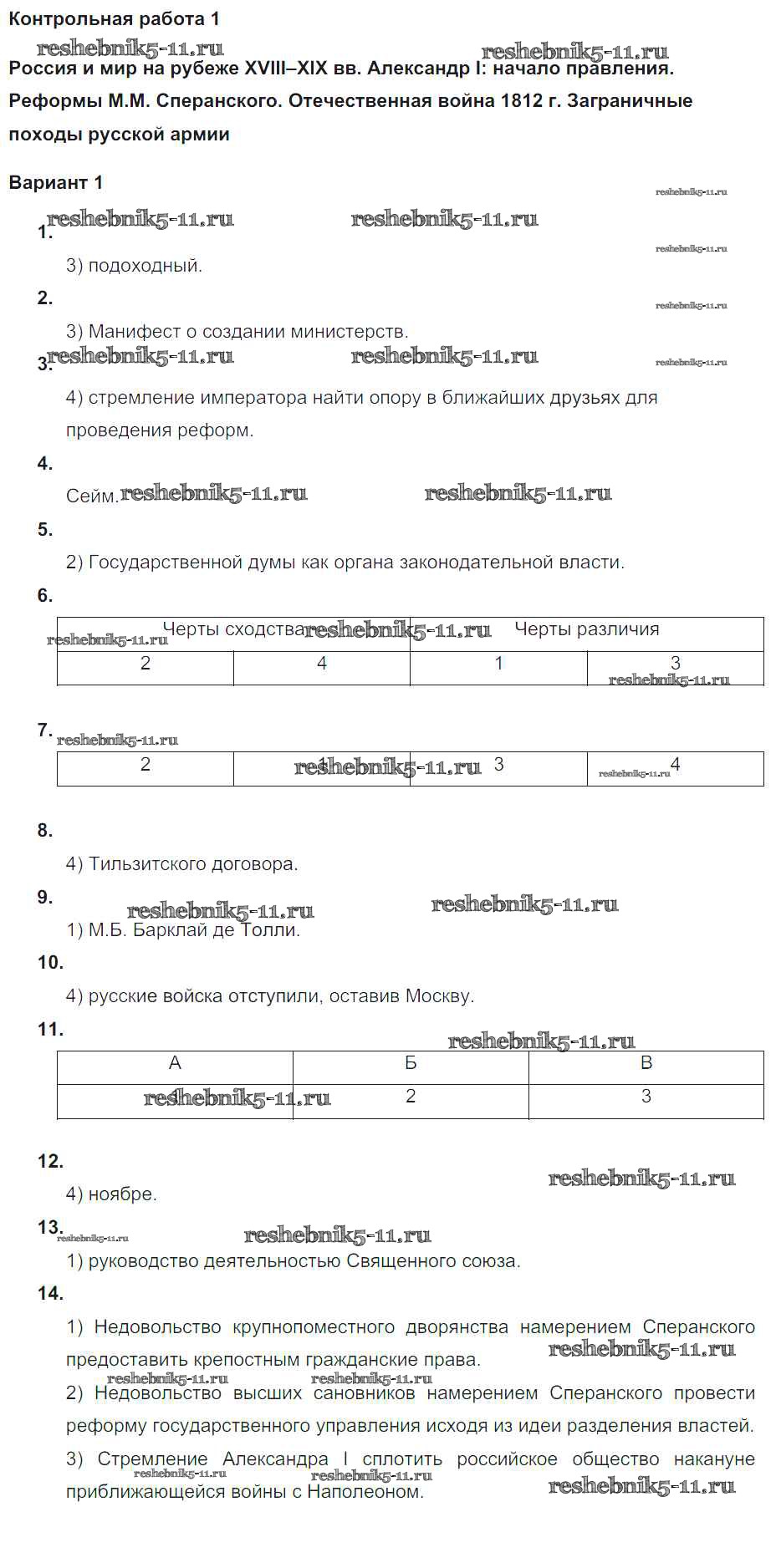 Готовая домашняя работа с ответами по Истории за 9 класс Соловьев Контрольные работы УМК Экзамен 2020 ФГОС - КР-1. Варианты 1