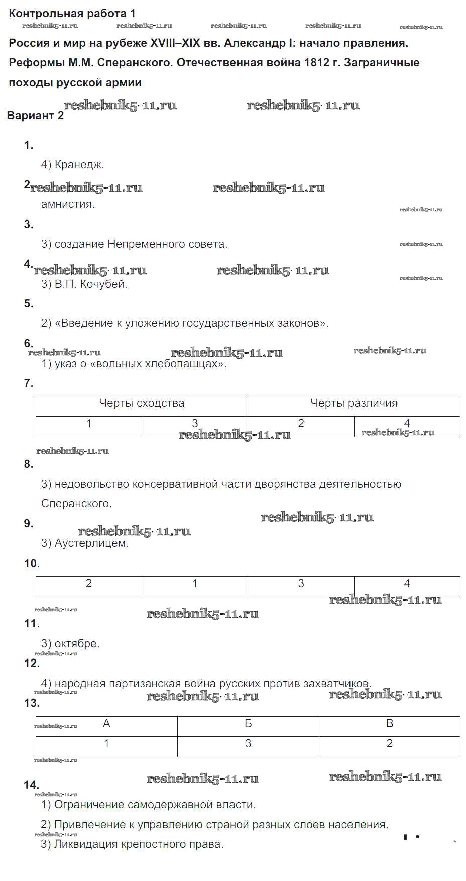 Готовая домашняя работа с ответами по Истории за 9 класс Соловьев Контрольные работы УМК Экзамен 2020 ФГОС - КР-1. Варианты 2