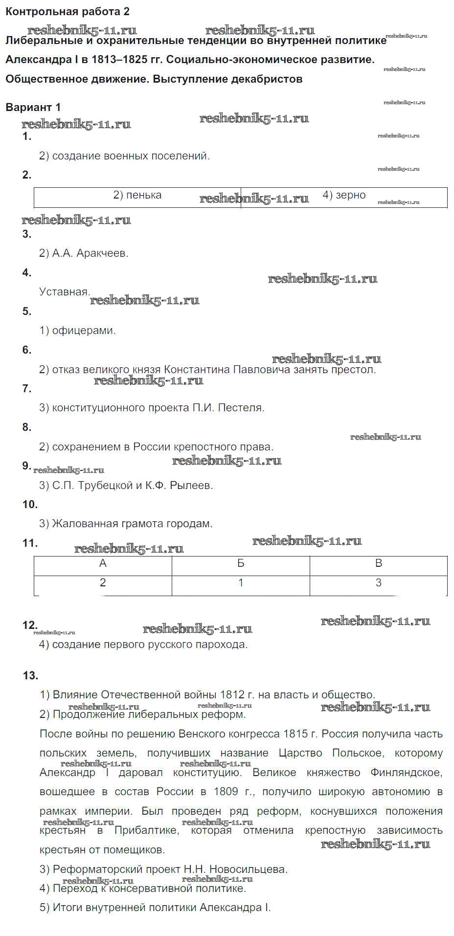 Готовая домашняя работа с ответами по Истории за 9 класс Соловьев Контрольные работы УМК Экзамен 2020 ФГОС - КР-2. Варианты 1