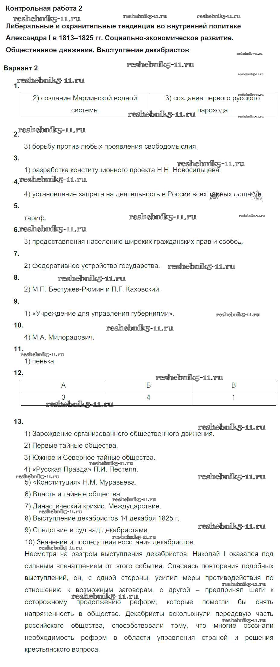 Готовая домашняя работа с ответами по Истории за 9 класс Соловьев Контрольные работы УМК Экзамен 2020 ФГОС - КР-2. Варианты 2