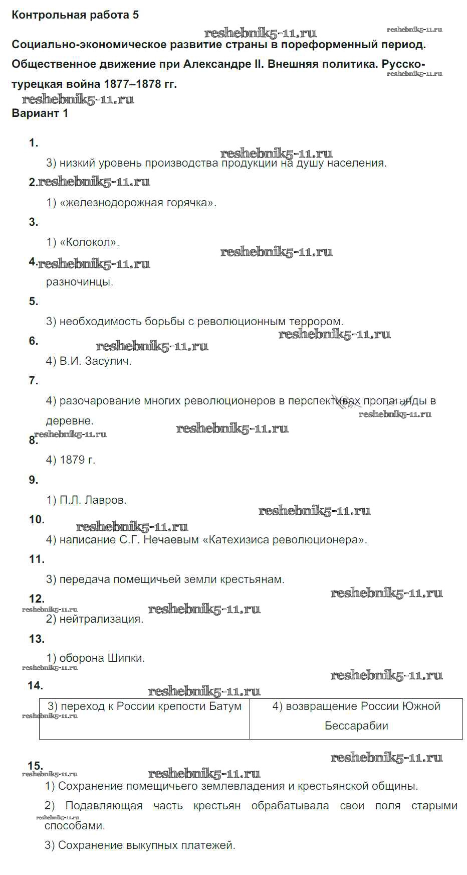 Готовая домашняя работа с ответами по Истории за 9 класс Соловьев Контрольные работы УМК Экзамен 2020 ФГОС - КР-5. Варианты 1