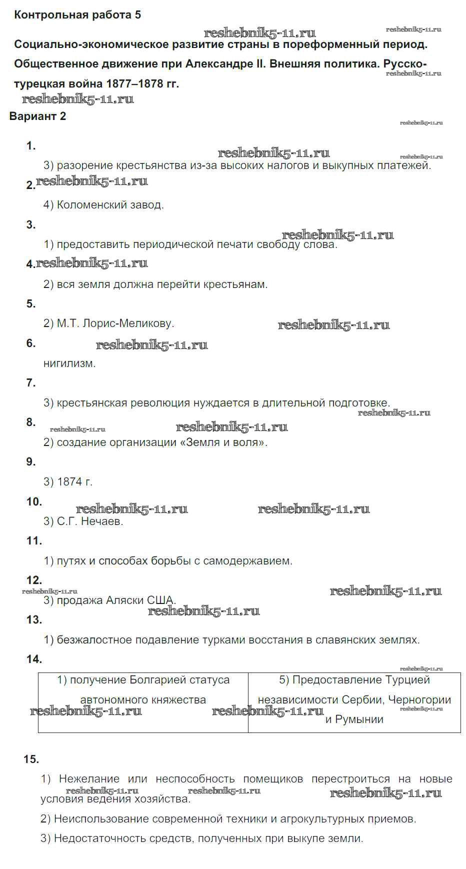 Готовая домашняя работа с ответами по Истории за 9 класс Соловьев Контрольные работы УМК Экзамен 2020 ФГОС - КР-5. Варианты 2
