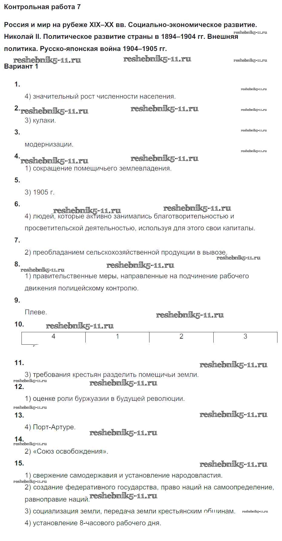 Готовая домашняя работа с ответами по Истории за 9 класс Соловьев Контрольные работы УМК Экзамен 2020 ФГОС - КР-7. Варианты 1