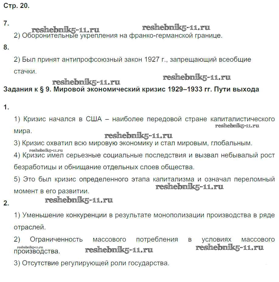 Готовая домашняя работа с ответами по Истории за 9 класс Сороко-Цюпа Рабочая тетрадь УМК Просвещение 2014 ФГОС - Страницы 20