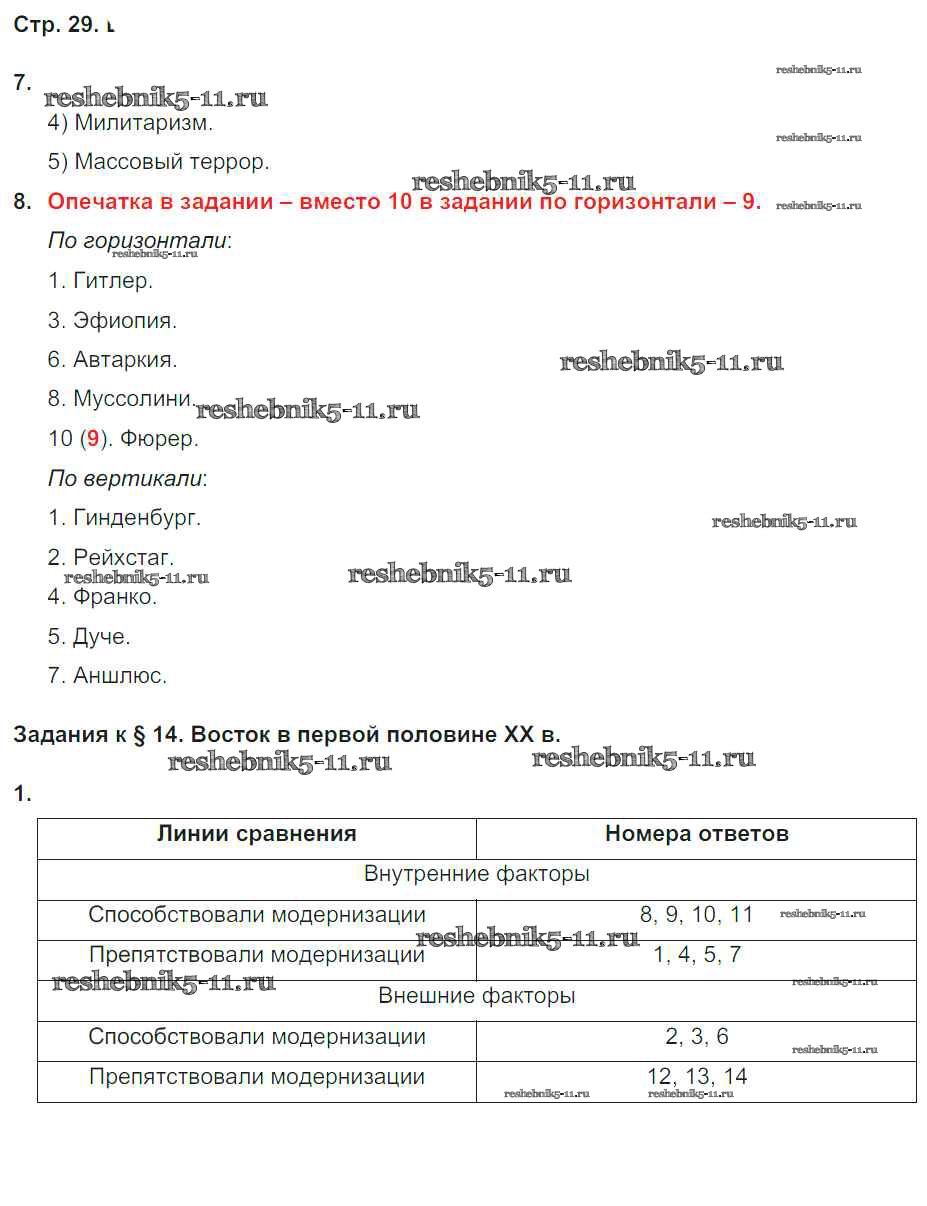 Готовая домашняя работа с ответами по Истории за 9 класс Сороко-Цюпа Рабочая тетрадь УМК Просвещение 2014 ФГОС - Страницы 29