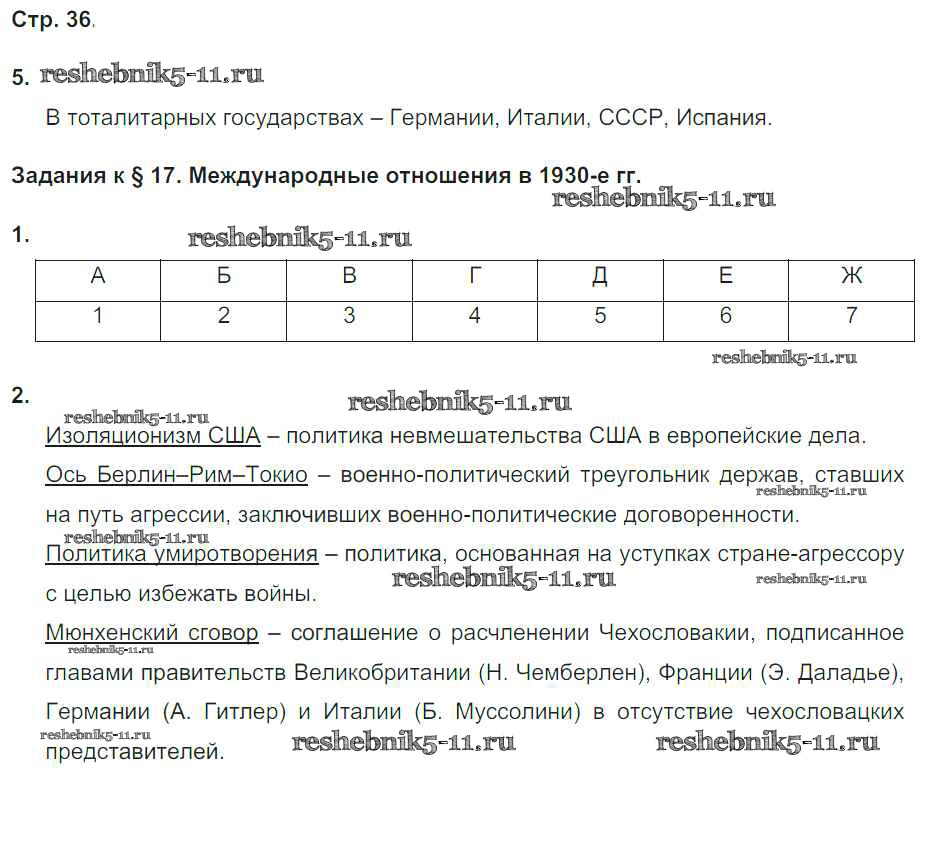 Готовая домашняя работа с ответами по Истории за 9 класс Сороко-Цюпа Рабочая тетрадь УМК Просвещение 2014 ФГОС - Страницы 36