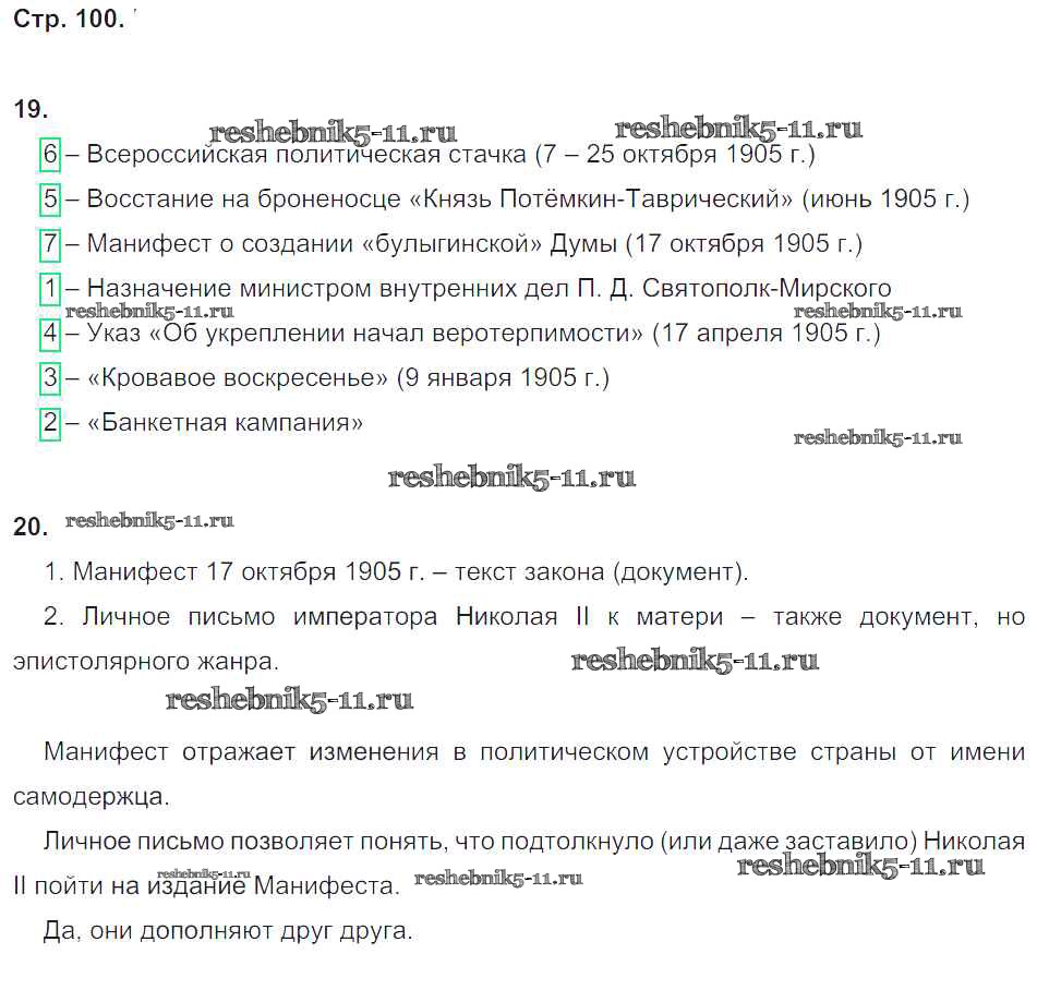 Готовая домашняя работа с ответами по Истории за 9 класс Стаферова, Шевырев Рабочая тетрадь Инновационная школа Русское слово 2019 ФГОС - Страницы 100