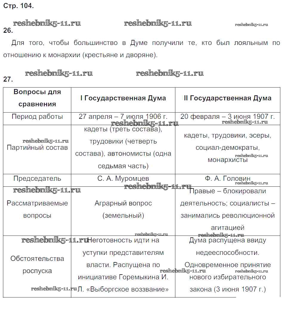 Готовая домашняя работа с ответами по Истории за 9 класс Стаферова, Шевырев Рабочая тетрадь Инновационная школа Русское слово 2019 ФГОС - Страницы 104