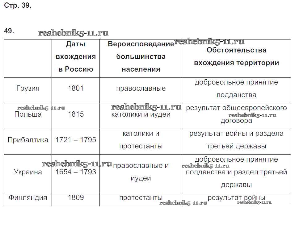Готовая домашняя работа с ответами по Истории за 9 класс Стаферова, Шевырев Рабочая тетрадь Инновационная школа Русское слово 2019 ФГОС - Страницы 39