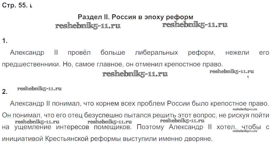Готовая домашняя работа с ответами по Истории за 9 класс Стаферова, Шевырев Рабочая тетрадь Инновационная школа Русское слово 2019 ФГОС - Страницы 55