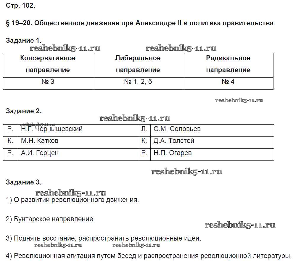 Готовая домашняя работа с ответами по Истории за 9 класс Чернова Рабочая тетрадь УМК Часть 1, 2 Экзамен 2017 ФГОС - Часть 1. Страницы 102