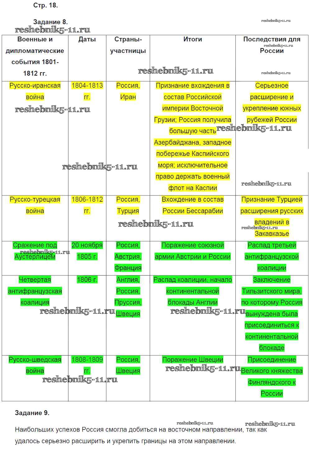 Готовая домашняя работа с ответами по Истории за 9 класс Чернова Рабочая тетрадь УМК Часть 1, 2 Экзамен 2017 ФГОС - Часть 1. Страницы 18