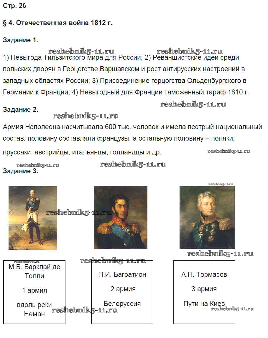 Готовая домашняя работа с ответами по Истории за 9 класс Чернова Рабочая тетрадь УМК Часть 1, 2 Экзамен 2017 ФГОС - Часть 1. Страницы 20