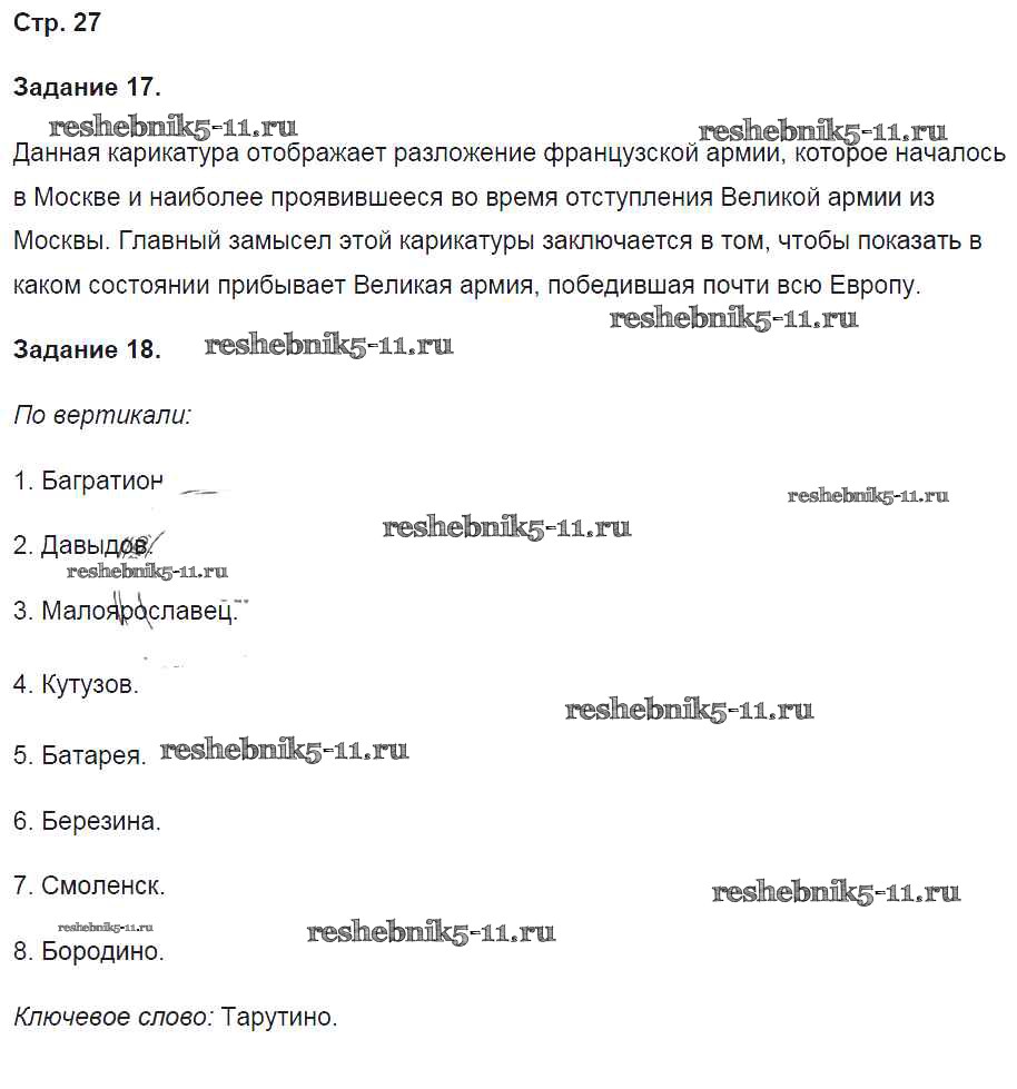 Готовая домашняя работа с ответами по Истории за 9 класс Чернова Рабочая тетрадь УМК Часть 1, 2 Экзамен 2017 ФГОС - Часть 1. Страницы 27