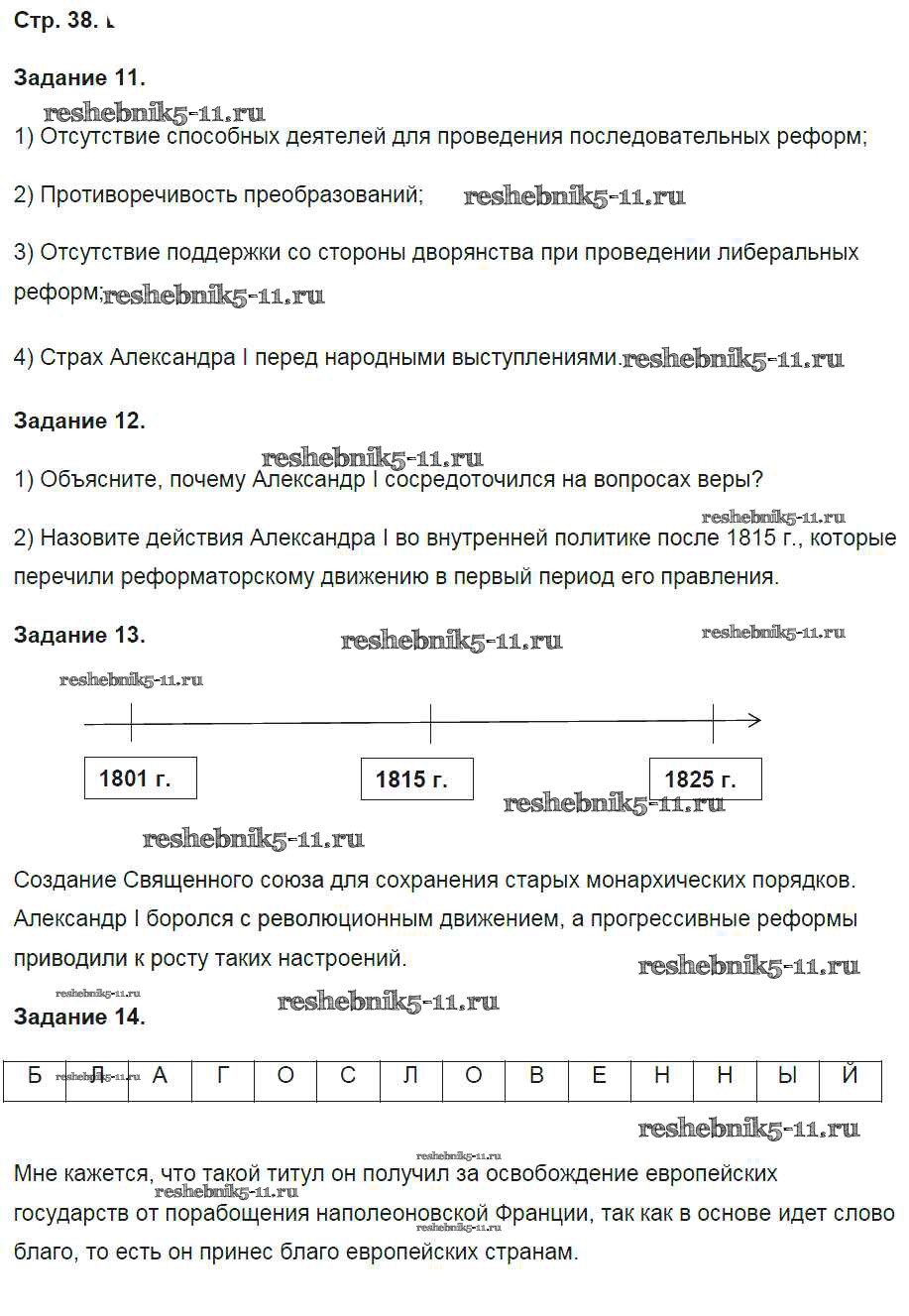 Готовая домашняя работа с ответами по Истории за 9 класс Чернова Рабочая тетрадь УМК Часть 1, 2 Экзамен 2017 ФГОС - Часть 1. Страницы 38