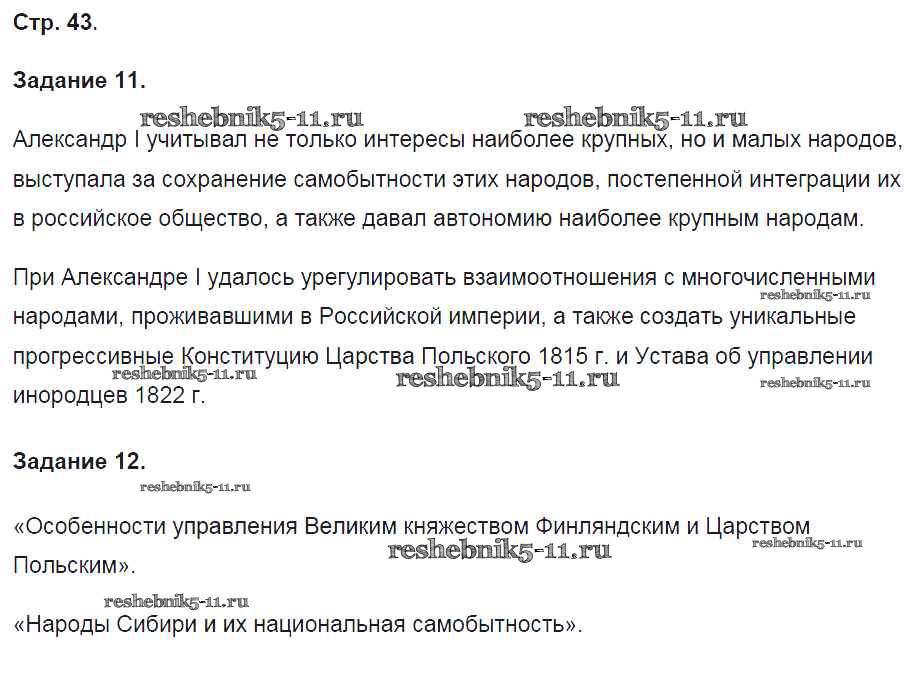 Готовая домашняя работа с ответами по Истории за 9 класс Чернова Рабочая тетрадь УМК Часть 1, 2 Экзамен 2017 ФГОС - Часть 1. Страницы 43