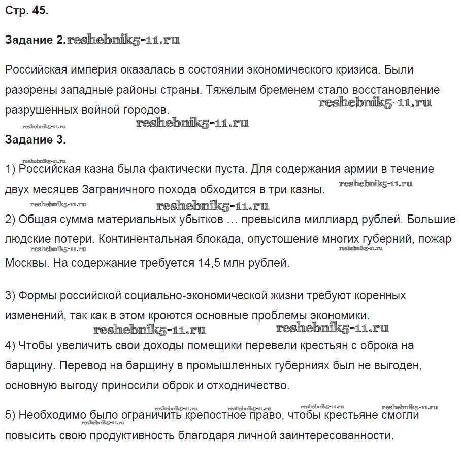 Готовая домашняя работа с ответами по Истории за 9 класс Чернова Рабочая тетрадь УМК Часть 1, 2 Экзамен 2017 ФГОС - Часть 1. Страницы 45