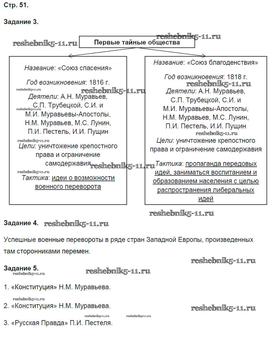 Готовая домашняя работа с ответами по Истории за 9 класс Чернова Рабочая тетрадь УМК Часть 1, 2 Экзамен 2017 ФГОС - Часть 1. Страницы 51