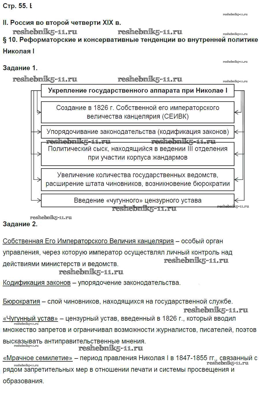 Готовая домашняя работа с ответами по Истории за 9 класс Чернова Рабочая тетрадь УМК Часть 1, 2 Экзамен 2017 ФГОС - Часть 1. Страницы 55