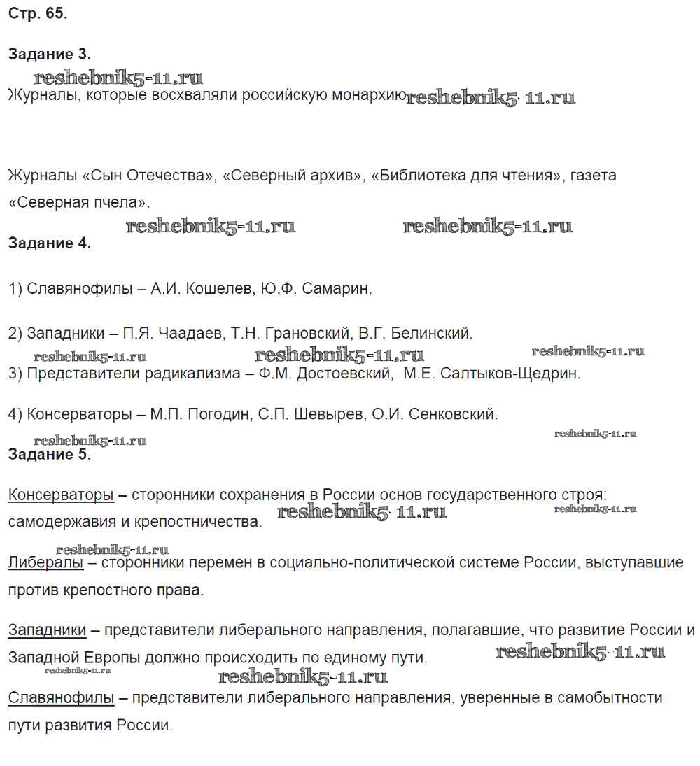 Готовая домашняя работа с ответами по Истории за 9 класс Чернова Рабочая тетрадь УМК Часть 1, 2 Экзамен 2017 ФГОС - Часть 1. Страницы 65