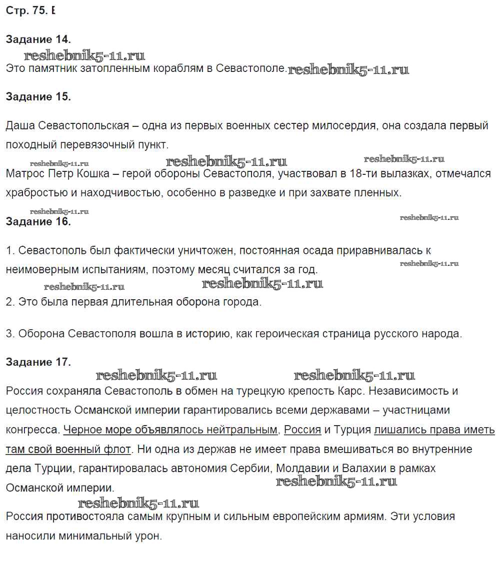 Готовая домашняя работа с ответами по Истории за 9 класс Чернова Рабочая тетрадь УМК Часть 1, 2 Экзамен 2017 ФГОС - Часть 1. Страницы 75