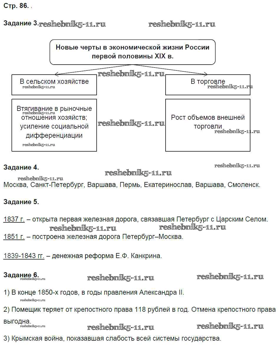 Готовая домашняя работа с ответами по Истории за 9 класс Чернова Рабочая тетрадь УМК Часть 1, 2 Экзамен 2017 ФГОС - Часть 1. Страницы 86