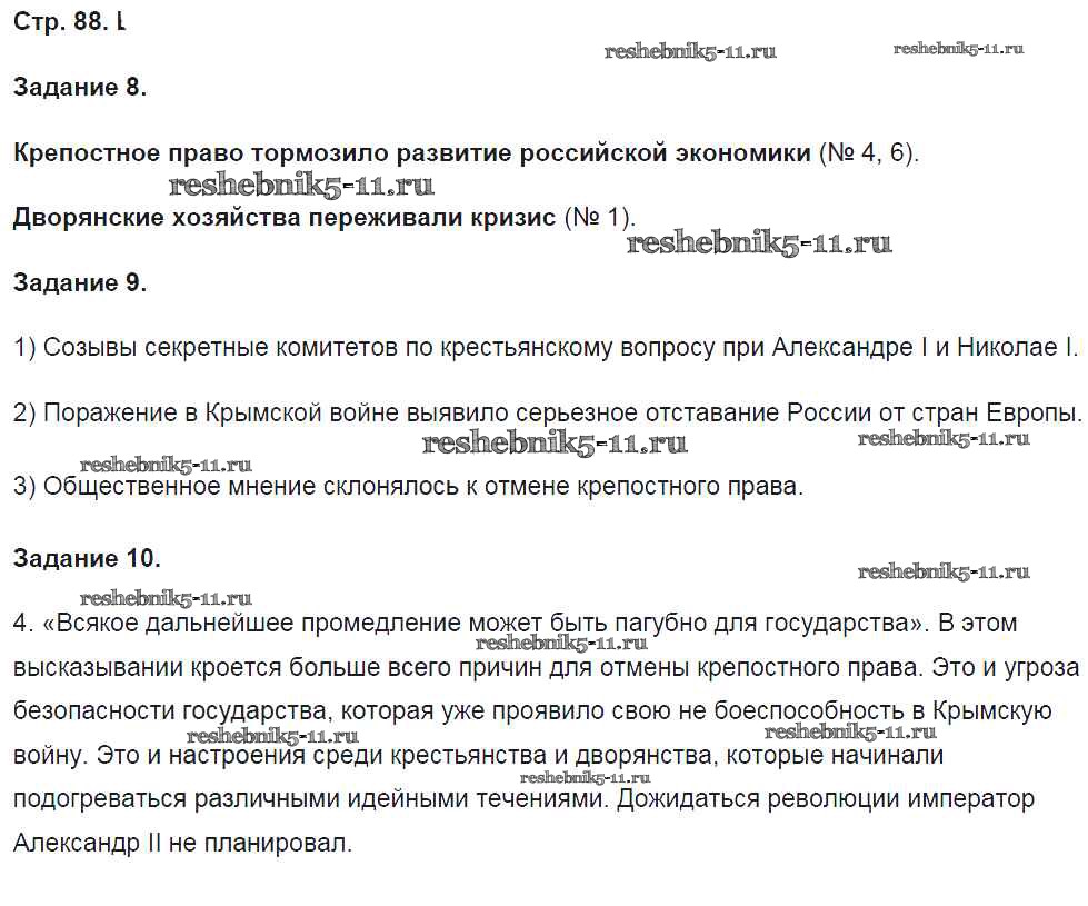 Готовая домашняя работа с ответами по Истории за 9 класс Чернова Рабочая тетрадь УМК Часть 1, 2 Экзамен 2017 ФГОС - Часть 1. Страницы 88