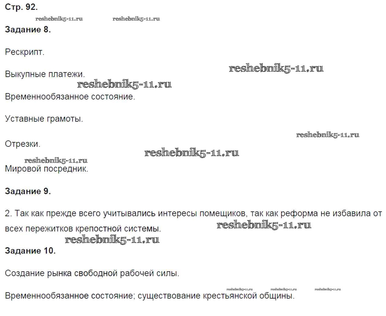 Готовая домашняя работа с ответами по Истории за 9 класс Чернова Рабочая тетрадь УМК Часть 1, 2 Экзамен 2017 ФГОС - Часть 1. Страницы 92