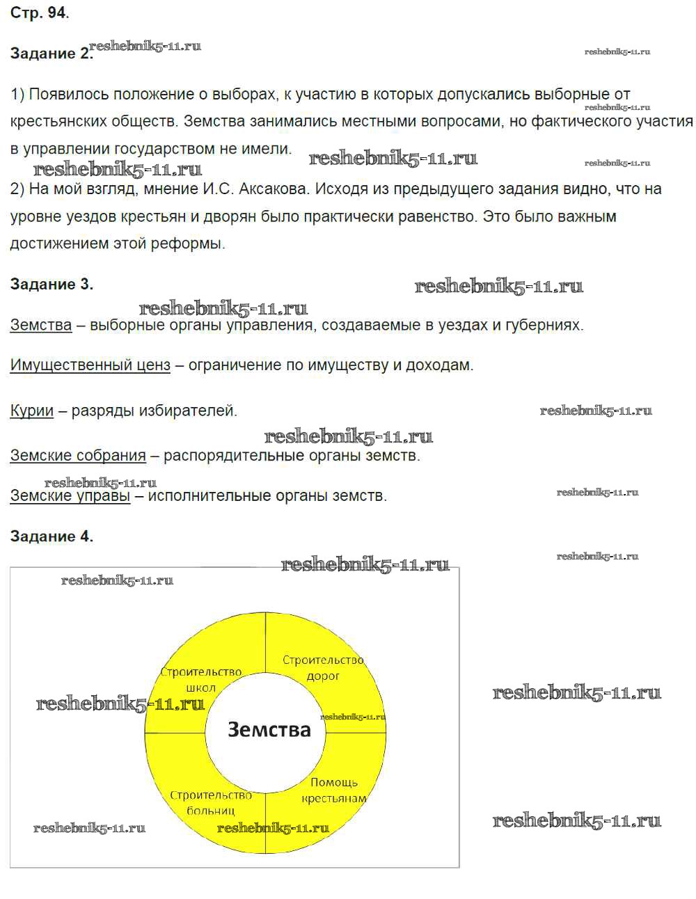 Готовая домашняя работа с ответами по Истории за 9 класс Чернова Рабочая тетрадь УМК Часть 1, 2 Экзамен 2017 ФГОС - Часть 1. Страницы 94