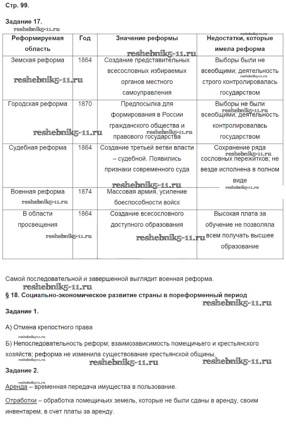 Готовая домашняя работа с ответами по Истории за 9 класс Чернова Рабочая тетрадь УМК Часть 1, 2 Экзамен 2017 ФГОС - Часть 1. Страницы 99