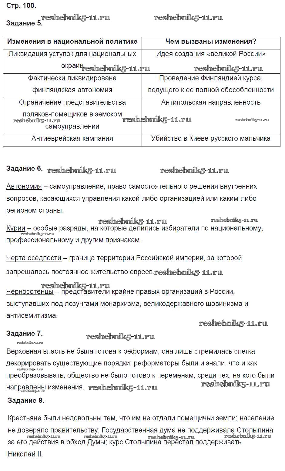 Готовая домашняя работа с ответами по Истории за 9 класс Чернова Рабочая тетрадь УМК Часть 1, 2 Экзамен 2017 ФГОС - Часть 2. Страницы 100