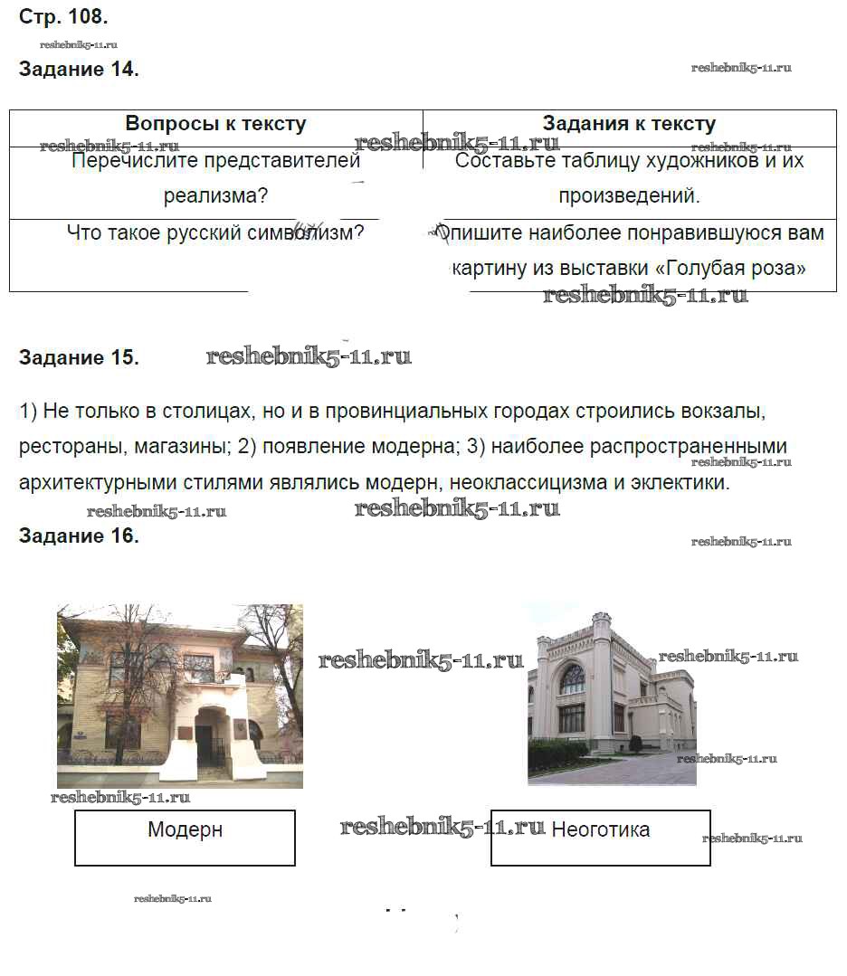 Готовая домашняя работа с ответами по Истории за 9 класс Чернова Рабочая тетрадь УМК Часть 1, 2 Экзамен 2017 ФГОС - Часть 2. Страницы 108