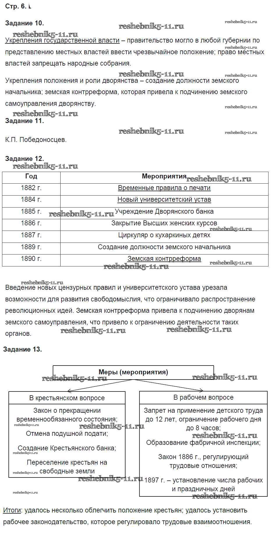 Готовая домашняя работа с ответами по Истории за 9 класс Чернова Рабочая тетрадь УМК Часть 1, 2 Экзамен 2017 ФГОС - Часть 2. Страницы 6