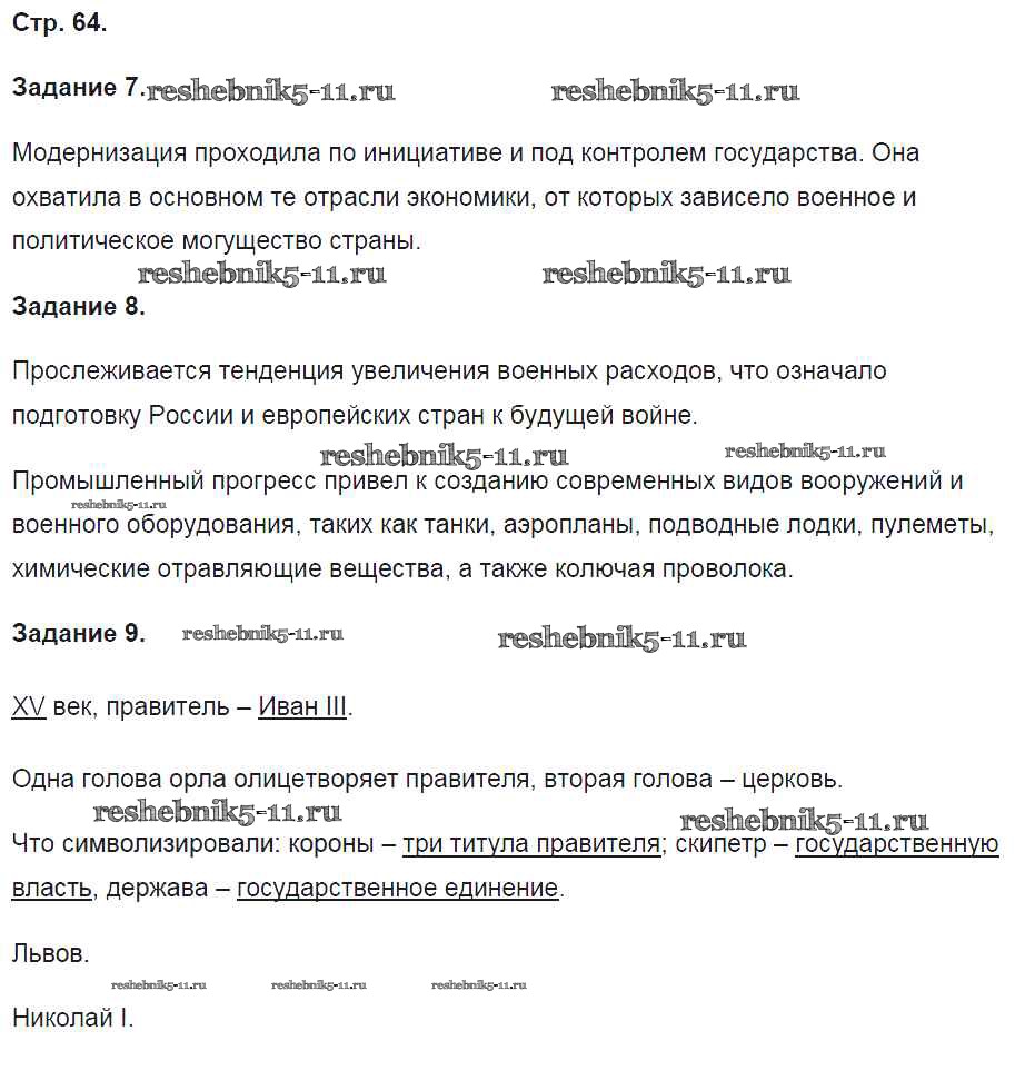 Готовая домашняя работа с ответами по Истории за 9 класс Чернова Рабочая тетрадь УМК Часть 1, 2 Экзамен 2017 ФГОС - Часть 2. Страницы 64