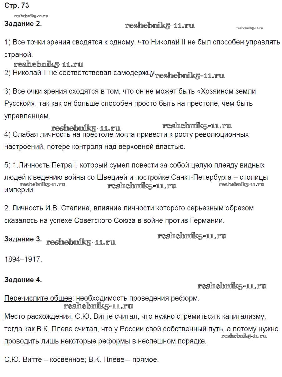 Готовая домашняя работа с ответами по Истории за 9 класс Чернова Рабочая тетрадь УМК Часть 1, 2 Экзамен 2017 ФГОС - Часть 2. Страницы 73