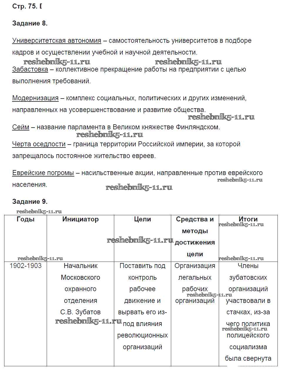 Готовая домашняя работа с ответами по Истории за 9 класс Чернова Рабочая тетрадь УМК Часть 1, 2 Экзамен 2017 ФГОС - Часть 2. Страницы 75