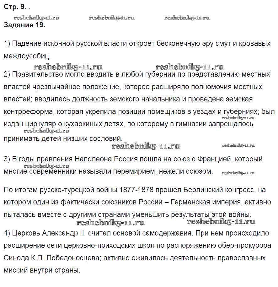 Готовая домашняя работа с ответами по Истории за 9 класс Чернова Рабочая тетрадь УМК Часть 1, 2 Экзамен 2017 ФГОС - Часть 2. Страницы 9