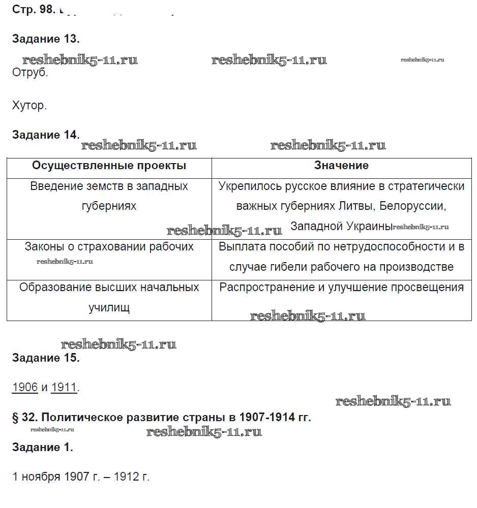Готовая домашняя работа с ответами по Истории за 9 класс Чернова Рабочая тетрадь УМК Часть 1, 2 Экзамен 2017 ФГОС - Часть 2. Страницы 98