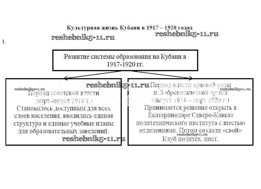Готовая домашняя работа с ответами по Кубановедению за 9 класс Лунева Рабочая тетрадь Перспективы образования 2018 - 10. Культурная жизнь Кубани в 1917 – 1920 годах 1